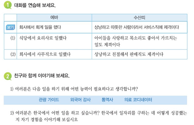 - 에 바: 전에 다니던 회사에서 회계 일을 했어요. 그래서 한국에서도 그런 일을 할 수 있으면 좋겠어요.