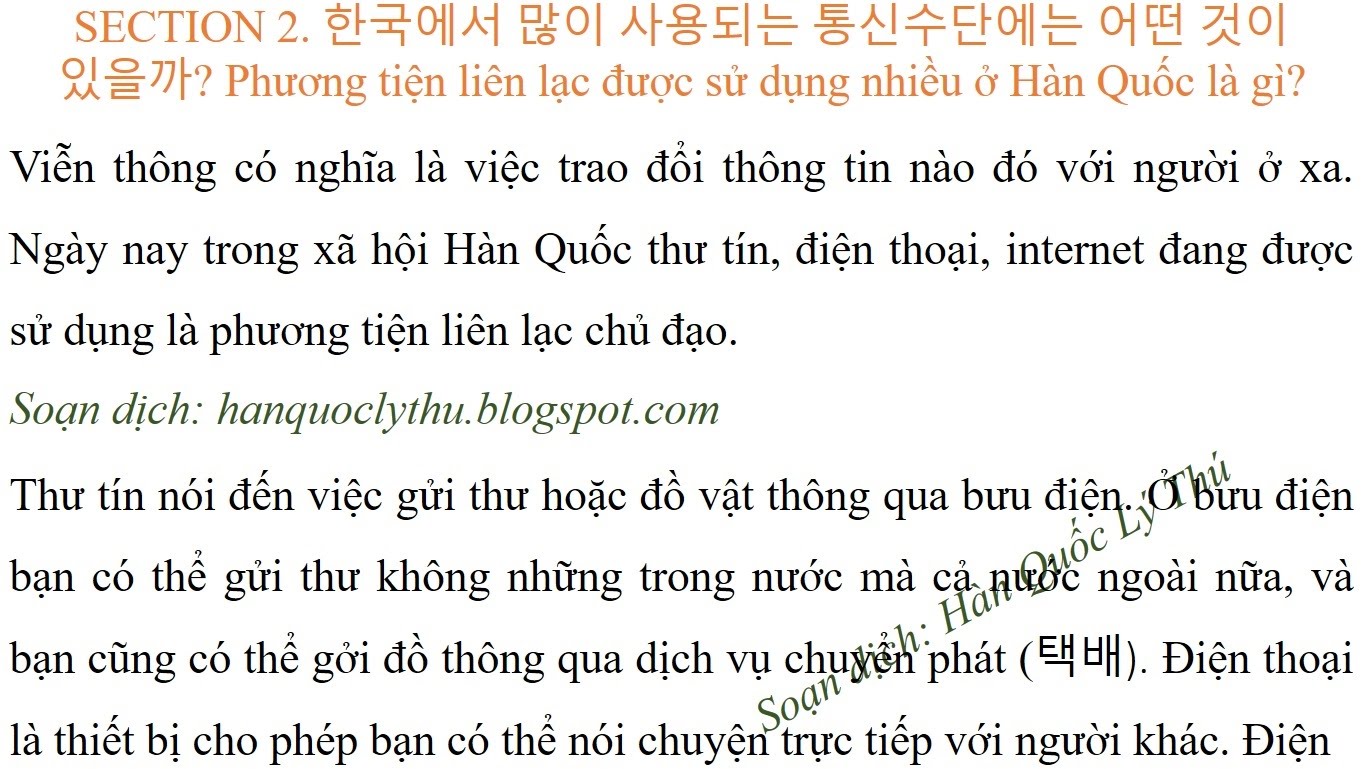 <Trang 28> SECTION 2: 한국에서 많이 사용되는 통신수단에는 어떤 것이 있을까?