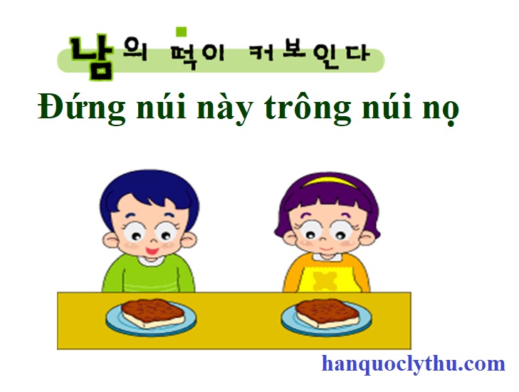 4. 남의 떡이 더 커 보인다 (Bánh teok của người khác trông có vẻ to hơn) => Đứng núi này trông núi nọ