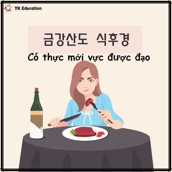 6. 금강산도 식후경: Dù có núi KumGang (núi Kim Cương, nổi tiếng là 1 ngọn núi đẹp ở HQ) thì cũng ăn đã rồi mới đi ngắm => Có thực mới vực được đạo