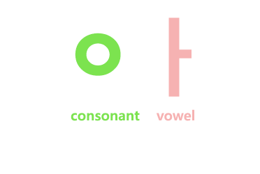 Như bạn có thể nhìn sẽ có các phụ âm ở bên phía màu xanh, và các nguyên âm ở bên phía màu hồng. Một chữ tiếng Hàn phải cần ít nhất một phụ âm và 1 nguyên âm tạo thành.