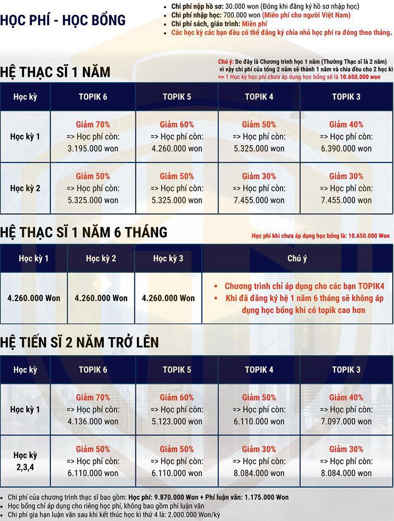 - Miễn phí 100% phí nhập học (700.000 KRW)