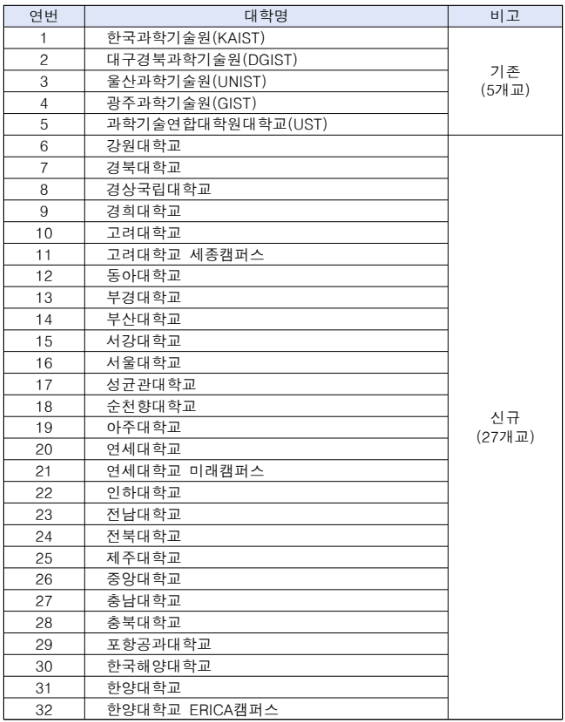 (Lưu ý: Đây đều là các trường thuộc dự án BK21 – dự án đào tạo nhân tài hàng đầu của Chính phủ Hàn Quốc).