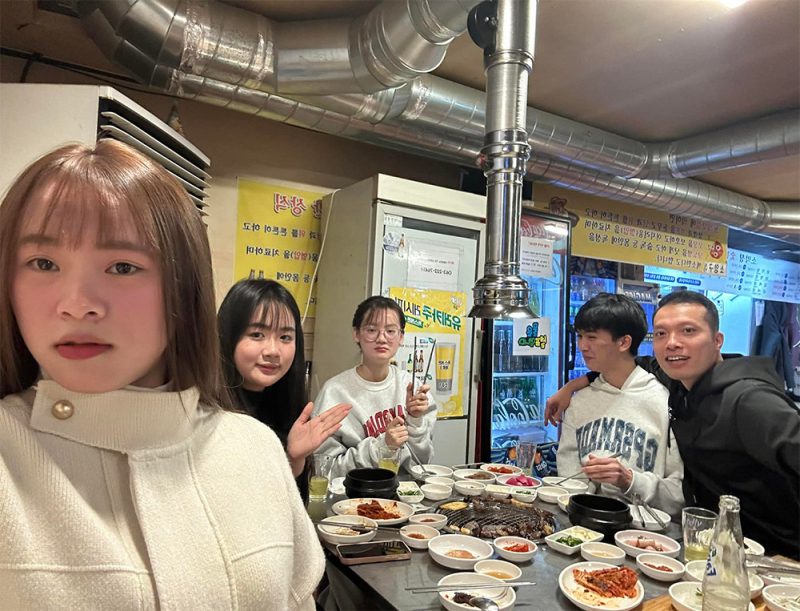 Buổi gặp mặt là cơ hội để các bạn du học sinh (cả mới và cũ) được giao lưu, chia sẻ kinh nghiệm học tập và cuộc sống làm thêm tại Hàn Quốc. Những tiếng cười nói rộn rã bên bếp nướng xèo xèo đã xua tan đi cái lạnh của mùa đông xứ người.