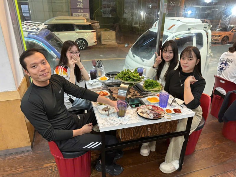 Chỉ một ngày sau khi ổn định chỗ ở (Tối 20/11), đại diện thường trú của Du Học BA tại Hàn Quốc đã tổ chức buổi tiệc chào mừng ấm cúng. Không khí se lạnh của Jeonju dường như tan biến bên bếp nướng thịt và những câu chuyện chia sẻ chân thành.